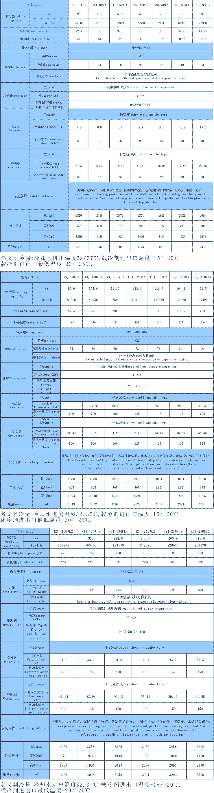 螺桿中低溫冷水機組參數(shù)